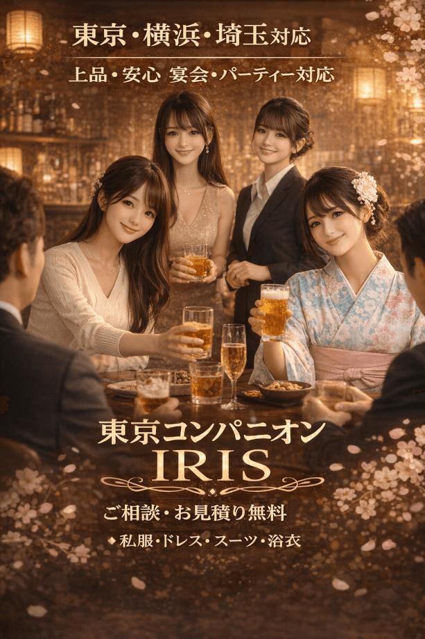 東京コンパニオン派遣 IRIS は、宴会コンパニオンとハイクラスコンパニオン、セクシーコンパニオンの派遣に対応、お客様のご希望に合わせてお選びいただけます。