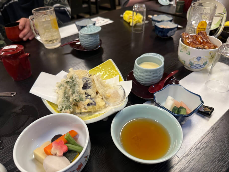 落ち着いた和室空間の中、旬のお料理とうなぎを囲みながら